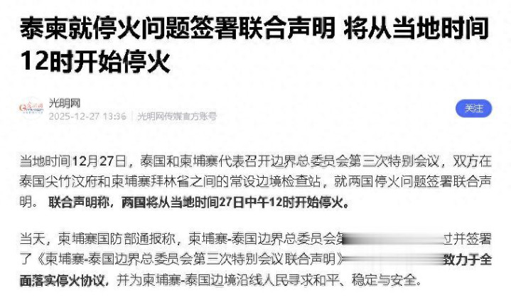 1、2025-12-27 光明网 泰柬就停火问题签署联合声明 将从当地时间12时开始停火国内配资炒股官网